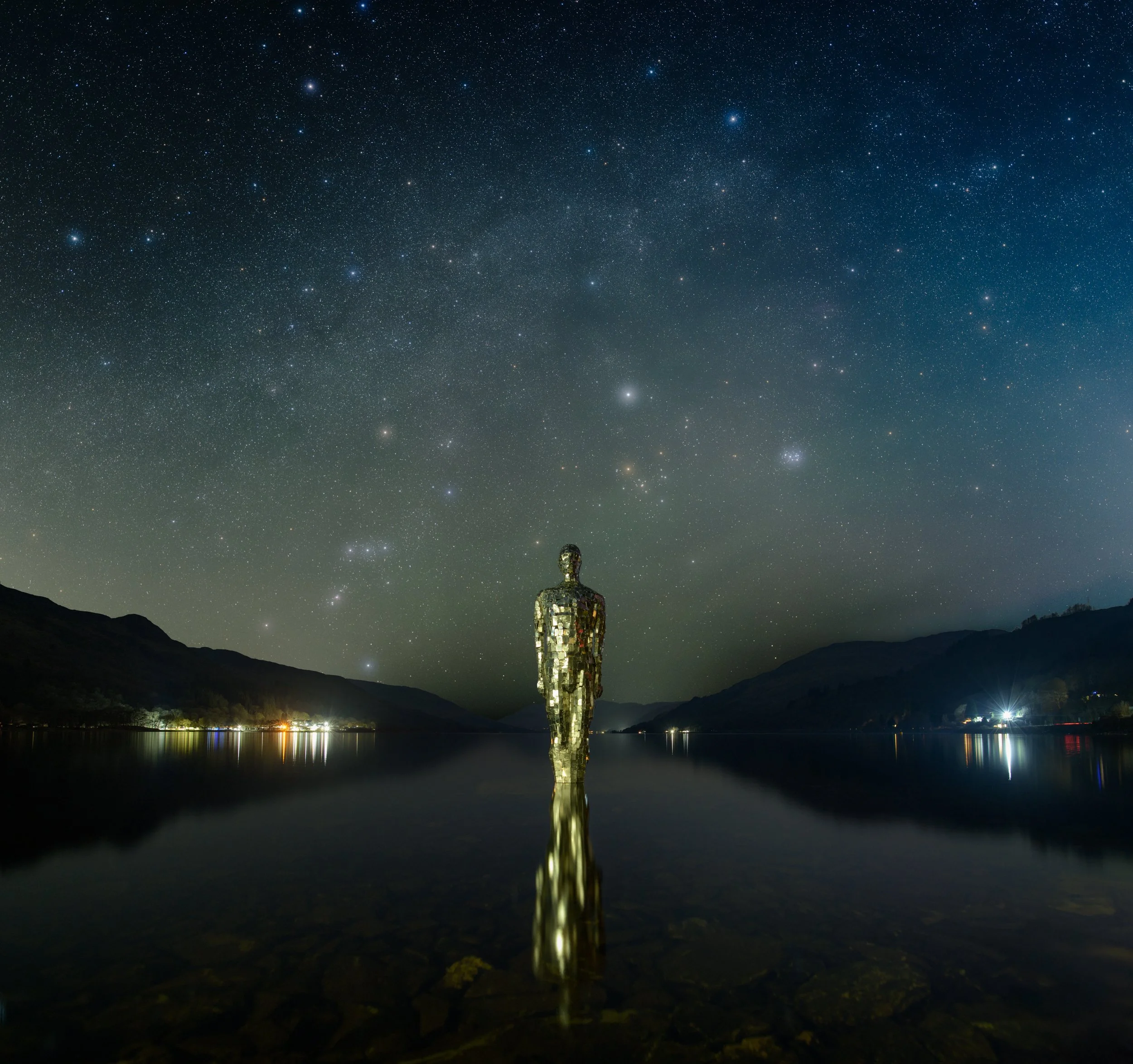 Recently a stunning sculpture by Artist Rob Mulholland has returned to Perthshire’s Loch Earn after an absence of eight years. It remained in the loch from 2014 until 2017 when it was removed. ‘Still’ as it is formally known, is a 2.7 metre sculpture, covering it’s surface are hundreds of tiny mirrors. It is designed to reflect man’s relationship with the natural world. The return of the artwork is thanks to a fundraising campaign led by local community groups ‘Take a Pride’ and ‘St Fillans in Bloom’. We hope it remains here for many years to come. When I noticed Still had returned to the loch, I set out to photograph this unique sculpture under starlight.