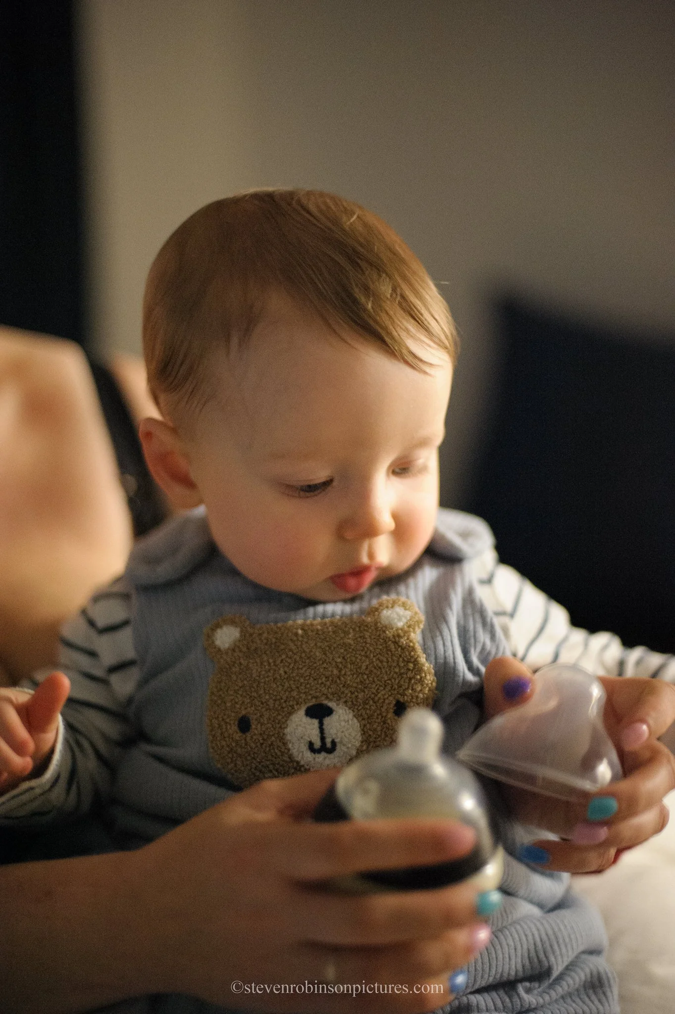 There are two main types of noise we need to deal with, read noise - which is the noise created internally by the electronic gubbons of the camera, and read noise - the inherent noisiness of the light itself that even our eyes can pick up on, in certain situations. Read noise is something that varies camera to camera. Check out Photonstophotos.net to learn more about which cameras do well in this regard, and to gain a deeper understanding of this topic. I want to talk about shot noise here. Noise, like sharpness, is probably, I would say, the second most discussed, debated, pondered thing on internet photography forums. And heaven’s above is it dull to hear about over and over! From what I am seeing currently, noise reduction tools (AI and otherwise) really kill the realism of a photograph for me. Do me a favour and go back and look at the initial image here. (I can put up a flickr link as it will display a lot better and as intended there). I dislike the way websites compress the natural noise range in an image however this shot, in this case still looks pretty good. I am here to tell you, I barely did anything with the noise in this image. Bit of shot background here: I used the fast 85/1.4D to capture the available light at the scene, being careful to compose so that the background light struck the top of his head, the phone light illuminated from below (to give a mild ominous vibe) and that the background was left dark as it was on scene. My settings where 1/100. f/1.4 and ISO 3200 (it did need a boost in post as all high ISO shots often need, so consider this around ISO 6400). I made sure baby was placed with good separation to scene elements and in a logical place in the picture. (I think of bokeh and backgrounds not as something to just lazily ‘blur away’ but something to compose the subject around physically. This always makes for a better image). The resulting final picture looks extremely analog. It could have come off a film camera of yesteryear. By using heavy handed noise reduction, most of what I am seeing online tends to produce overdone, plasticy skin, no grain structure from the natural noisy nature of the light and it just absolutely kills realism and mood to me. I do wonder why everyone copies each other now in this regard. We are all so into our AI denoise stuff - it’s mostly ugly and increases for me, the digital look of the resulting file. That’s a look for the most part, I want to avoid.