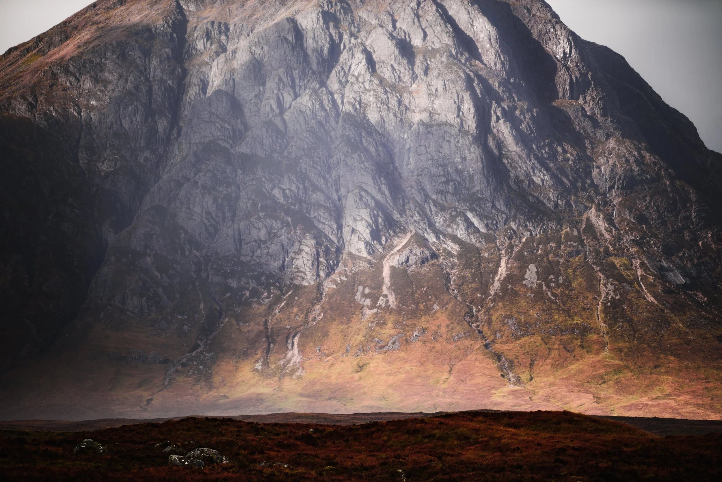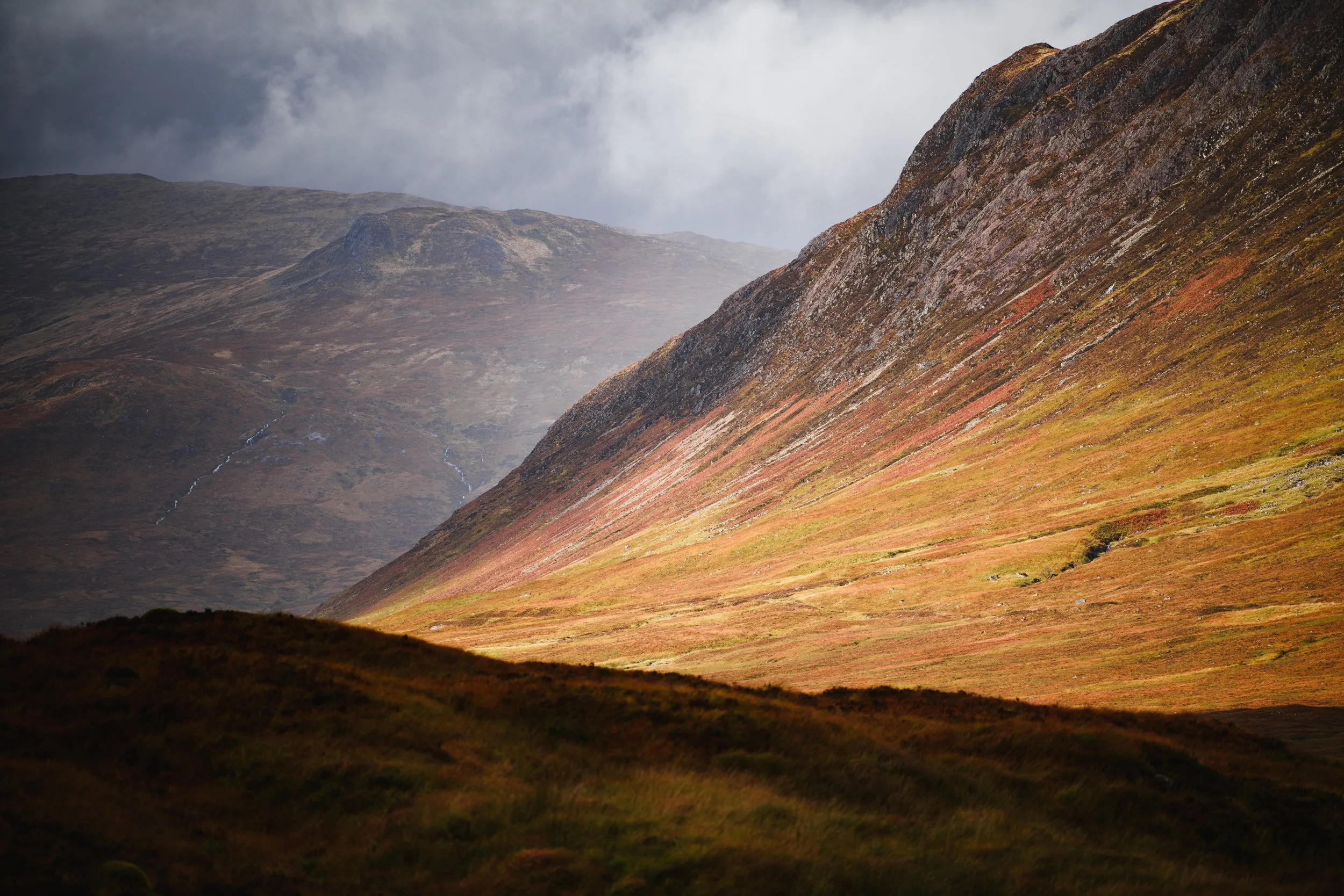 The above shot is about detail. Here I have lopped off the top of the mountain to get in nice and close to the intricate detail of the mountain which was created about 400 million years ago by fire, and then shaped by ice. Autumn is a great time of year to capture subjects at distance with long lenses in great light. My go to lens with this type of work is always a 70-200/2.8 due to sheer flexibility. A 70-200/2.8 is not my most used lens. Especially on long hikes, it will often get left behind (although saying that, I have lugged a 70-200 up and down plenty of mountains - called munros, in Scotland). At one point I even sold my 70-200, to eventually buy it back. Although I am admittedly very wide angle focused, there are too many pictures I would be missing if I did not have a long telephoto lens in the bag. This is not just true of autumnal photography; it applies to the other genres which I shoot in, and of course for other times of year. I’ll often use it wide open to create a bit of a vignette, and add to it later on in some cases.