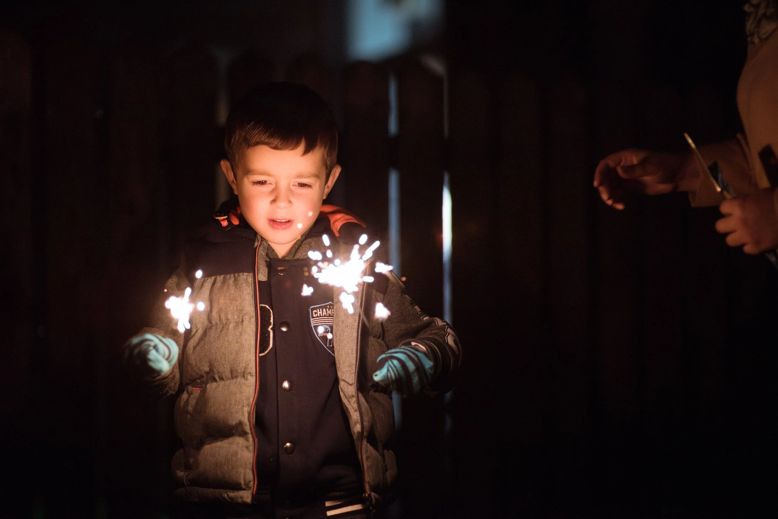 It is important to note that you should never put yourself at risk of injury to photograph anything. I am a big proponent of this in all forms of photography - no picture is worth your life. Be careful, and assess the situation. The above shot makes it looks like my son is very close to the firework but it is just perspective, fooling that sense of closeness. Do not get close to fireworks, do not revisit fireworks that have not ignited. Wear gloves, keep warm. Stay safe at all times. Happy shooting!
